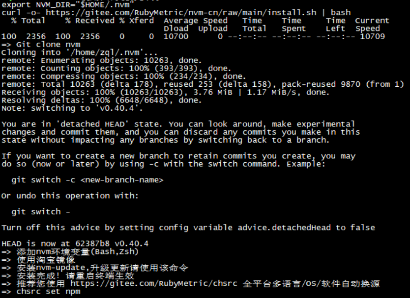 export NVM_DIR="$HOME/.nvm" curl -o- https://gitee.com/RubyMetric/nvm-cn/raw/main/install.sh | bash