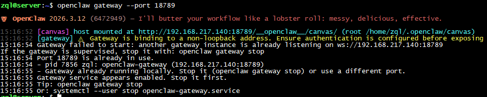 4.重新启动网关,openclaw gateway --port 18789,