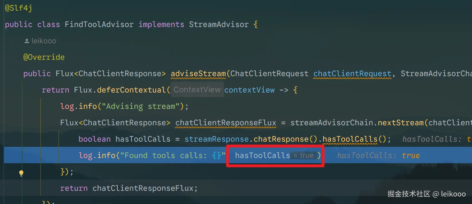 var chatClientResponse = advisor.adviseCall(chatClientRequest, this);