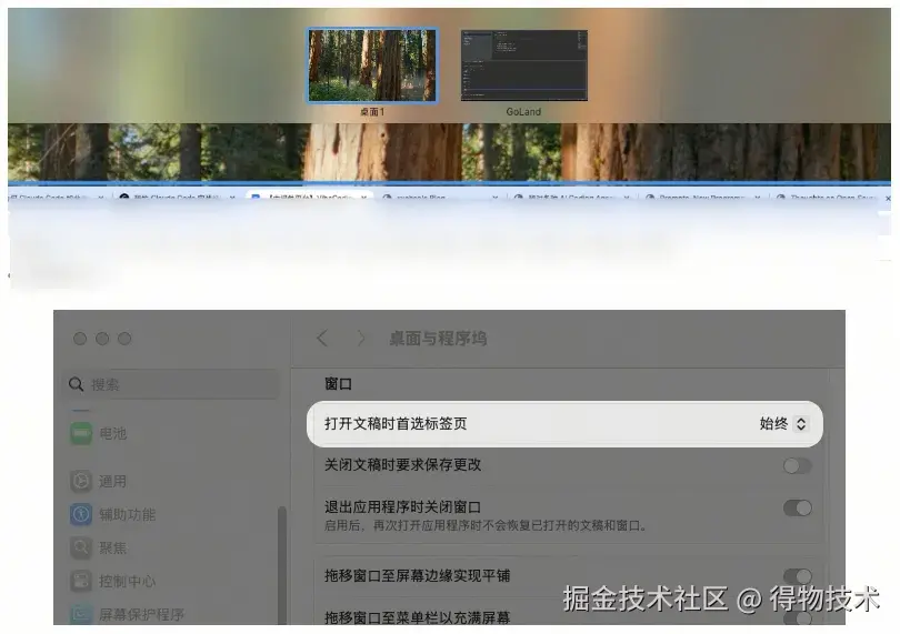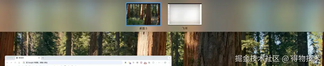 - MacBook 内置显示器 ------ 常驻两个空间:一个用来打开浏览器,还有 VPN、网易云音乐、Finder 软件,用来承接各种临时的操作。一个用来打开飞书,用来沟通、协作。