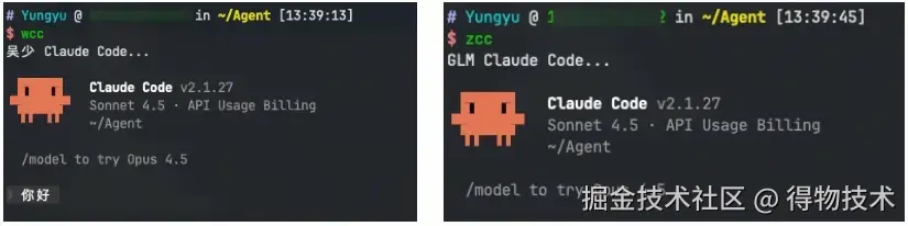 这样输入claude 时,默认使用智谱 GLM 模型。