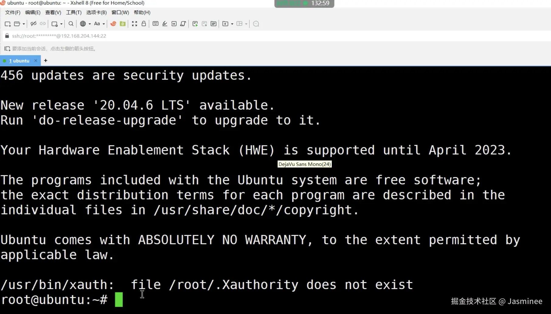 用xshell远程登录验证。