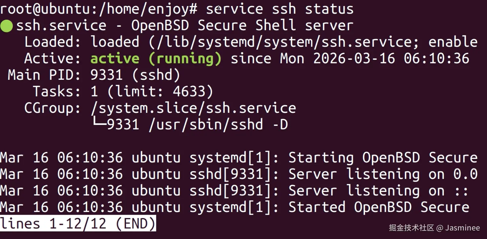 service ssh status