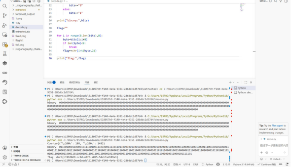 打开 generate-plaintexts.py。这里最关键的信息不是代码细节,而是它告诉我们:题目一共生成了 10 份 plaintext,每份 plaintext 里面包含多行内容。