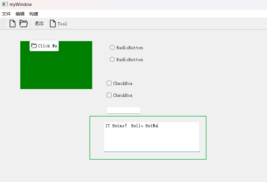 接下来我们创建三个一级菜单(文件,编辑,构建)并添加到菜单栏里