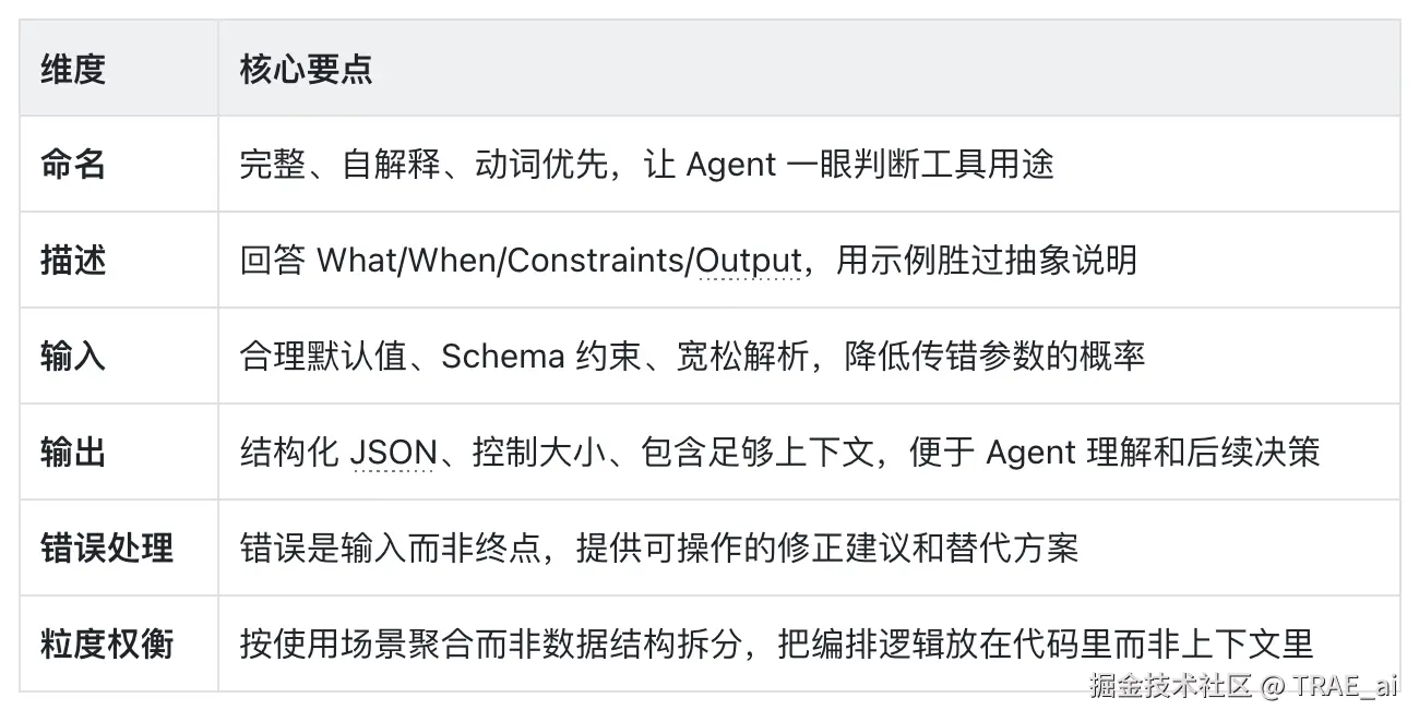 这些原则不仅适用于 MCP,也适用于任何 Agent Tool Interface 设计:无论是 OpenAI 的 Function Calling、Anthropic 的 Tool Use,还是其他 Agent 框架。核心思维是一致的: