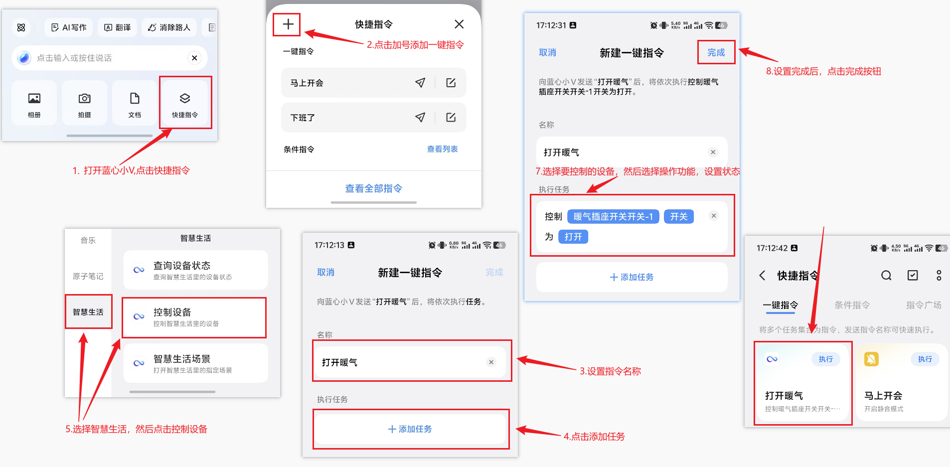 看到执行成功 的提示后,打开米家App ,你会发现暖气插座 已经自动打开了!这说明蓝心小V 已经成功控制了米家设备,跨品牌互联搞定啦!