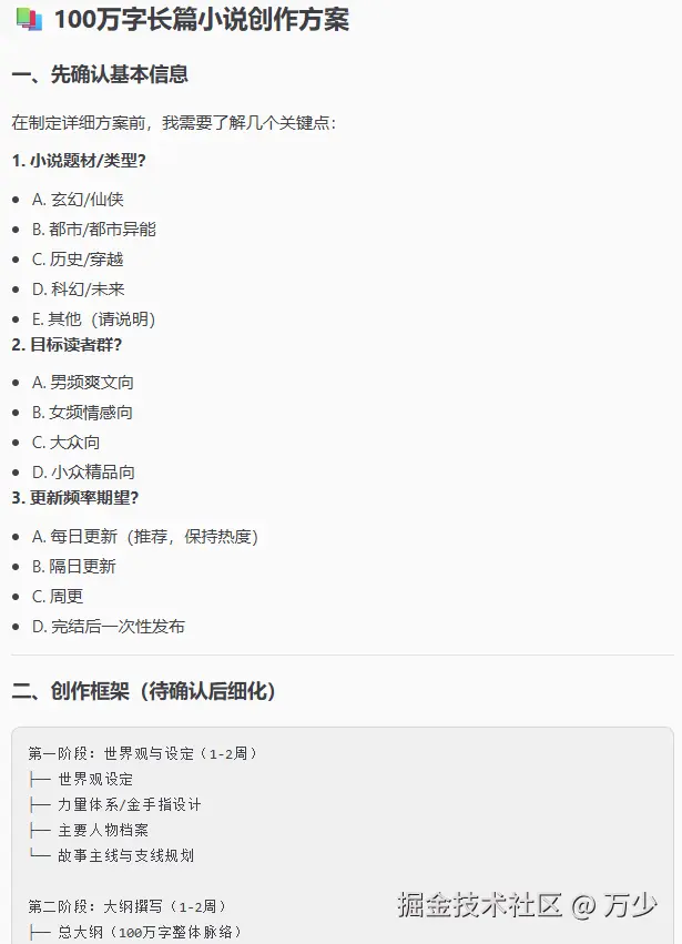 有了"小说家"的Agent之后,你要做什么事情,都要站在更高一个层次来使唤你的"小说家"员工即可: