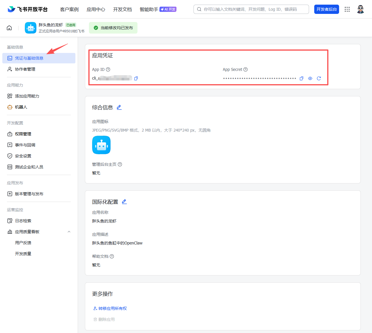 获取应用凭证(App ID & App Secret,需要保密防止泄露):