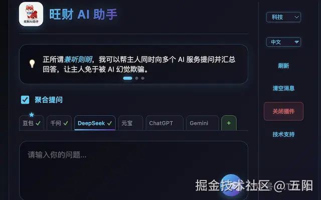 别再期待一个AI能给你"完美答案"。 想省事的话可以用这个AI神器 AIChatProxy(旺财 AI 助手) 一次可以提问豆包、DeepSeek、千问、ChatGPT、Gemini 等 9 大AI 平台,