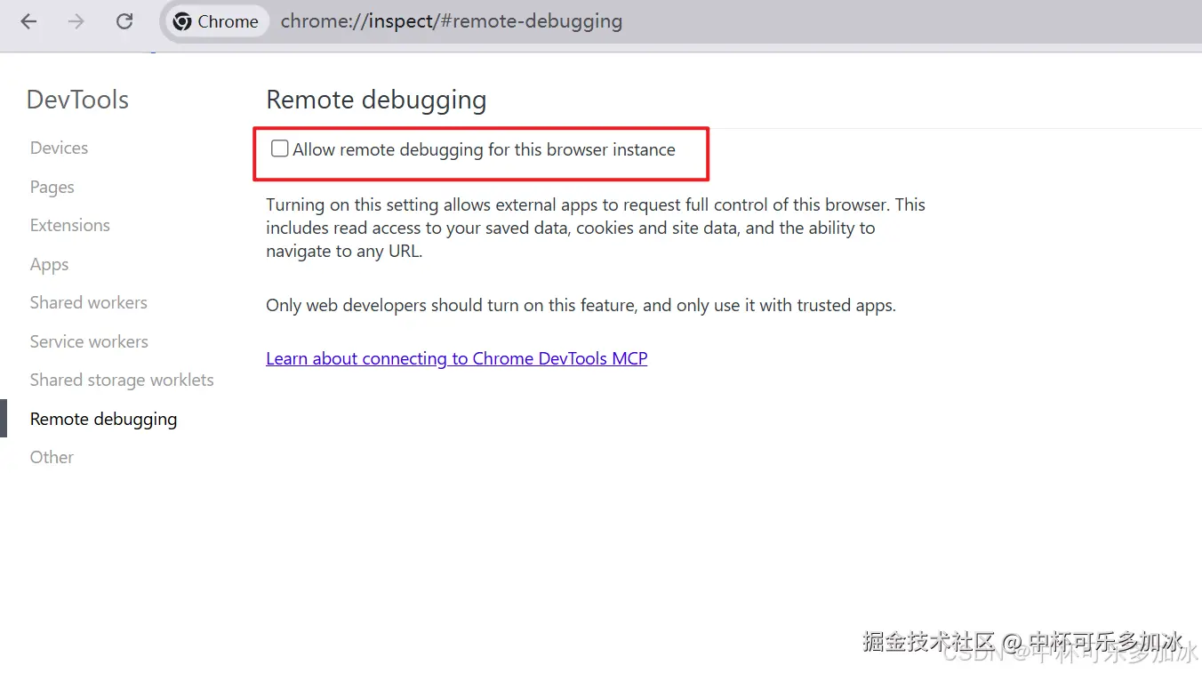 很简单,在Chrome地址栏输入 chrome://inspect/#remote-debugging,打开这个开关,然后,就没有然后了------小龙虾会自动连接你当前的浏览器会话,你之前登录的所有网站,它都能直接用。