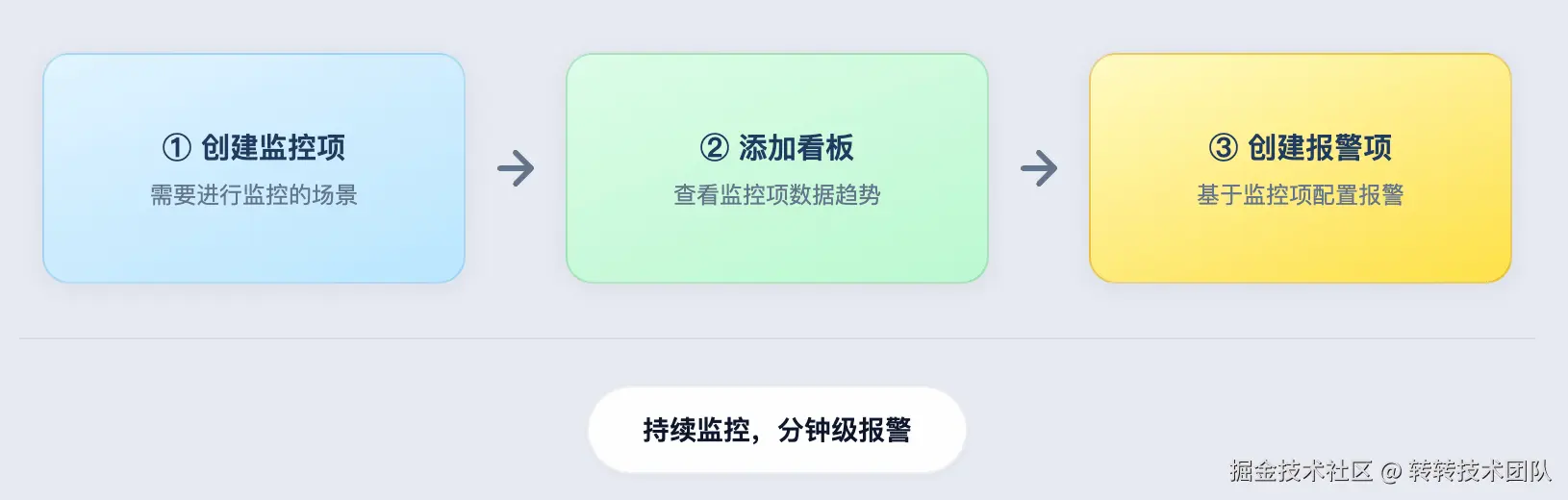 一句话:先告诉系统「要盯哪块业务」(监控项),再配个「能看趋势的图」(看板),最后定「啥情况算异常、通知谁」(报警项)。配完就自动跑,有问题就分钟级提醒。