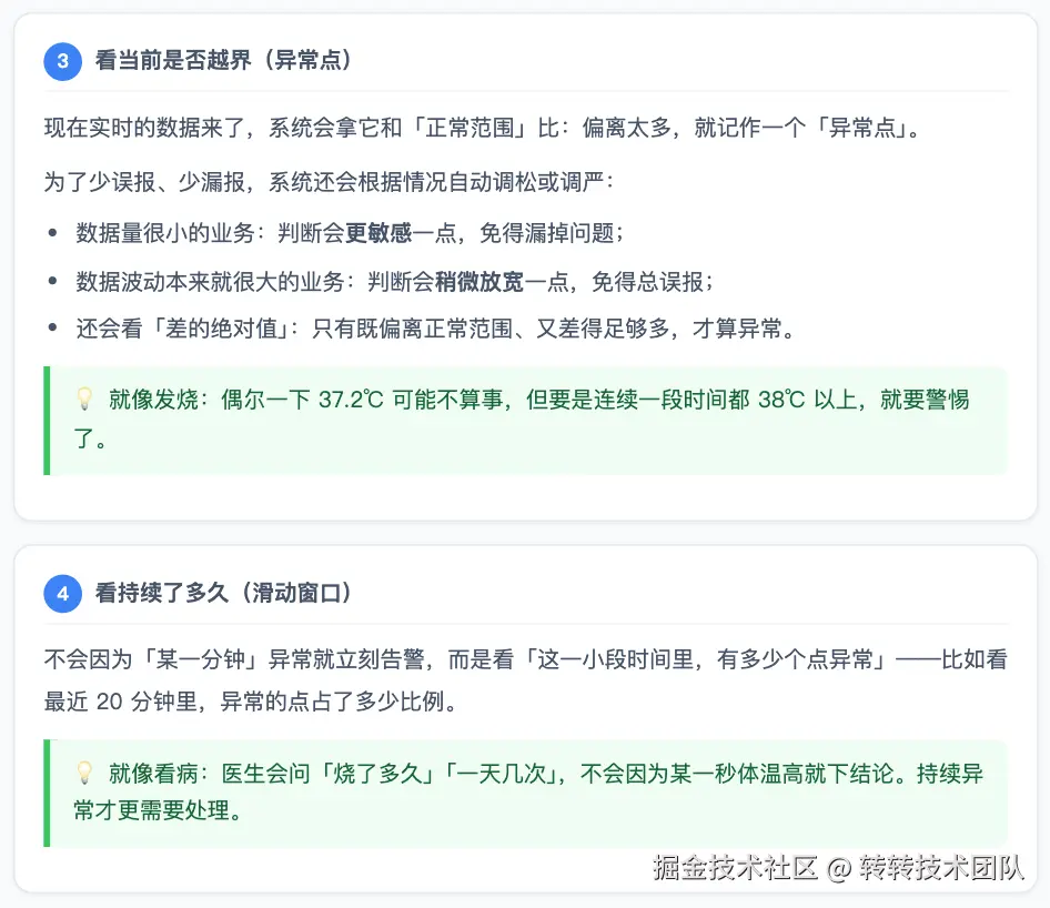 接下来用大白话讲清楚:系统怎么知道「出问题了」并发出告警。