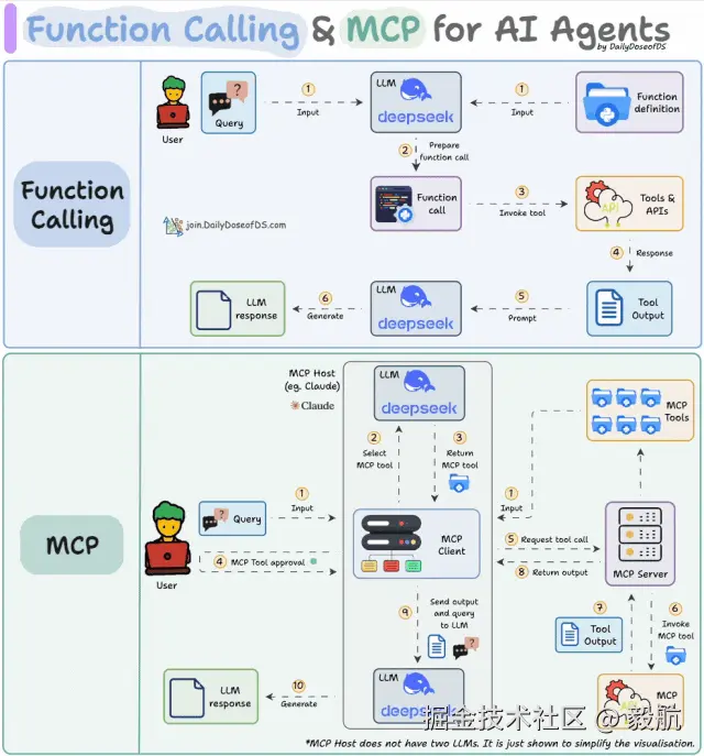 这里通常会有一个误区,很多人总是误以为是大模型直接调用工具,实则不然,模型的能力仅限于输出文本指令,真正的工具调用动作,最终由平台完成。