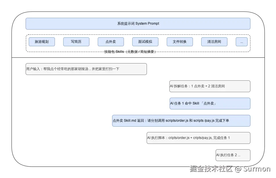 在技术实现上,Skills 解决了一个关键痛点:上下文空间浪费。