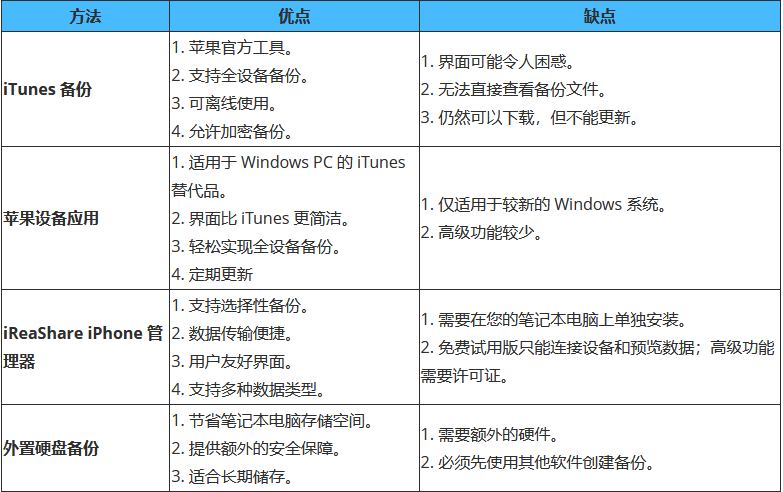 快速了解一下四种备份方法的优缺点:
