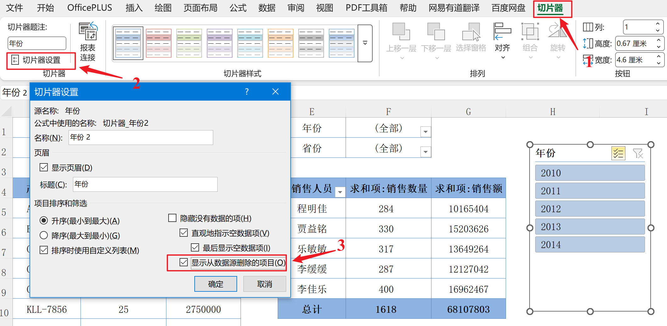 - 切片器字段项排序(把切片器删掉,将数据表中的数据项排序好后,再插入切片器)