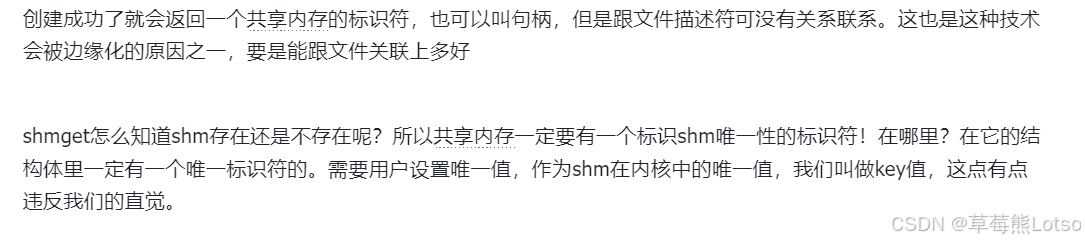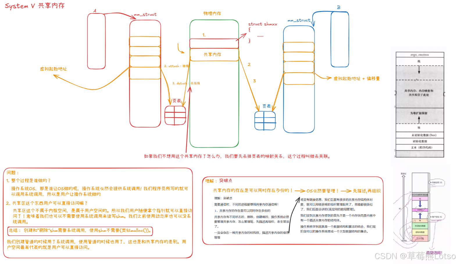 shmctl(IPC_RMID)删除; - 无同步与互斥:内核不提供数据访问的同步机制,多个进程同时写会导致数据混乱("临界区问题"),需配合信号量等工具实现同步;