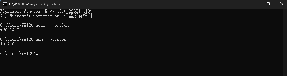 能够看到 node.js 和 npm 对应的版本号就表明安装成功了。