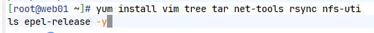 [root@web01 ~]# yum install vim tree tar net-tools rsync nfs-utils -y
