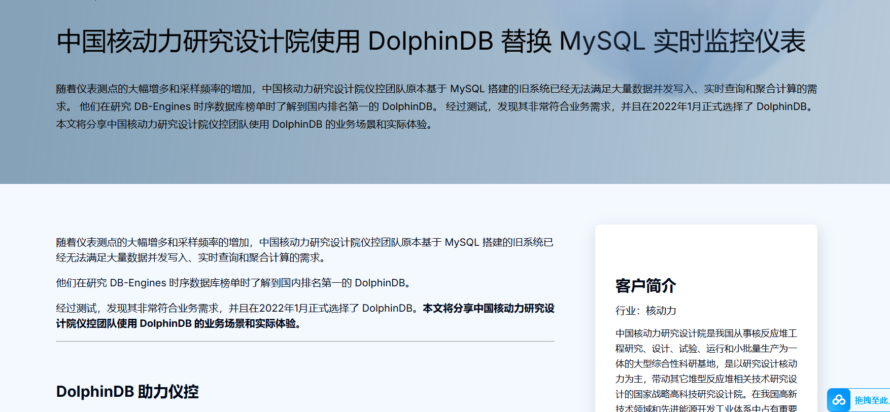 以上讲的架构和性能指标,最终都要落到具体的工程项目里去检验。DolphinDB 在国内几个头部工业项目里的实际表现,很好地说明了这套架构能带来的实际效益。