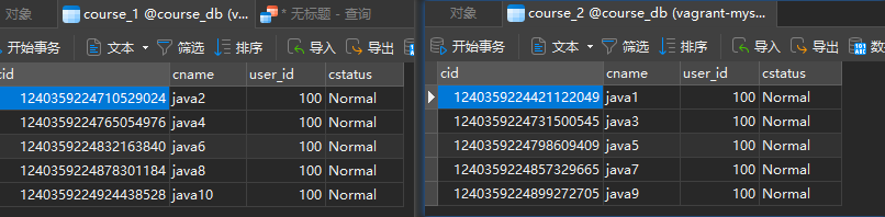 1、添加操作中,当cid为奇数时,数据存到course_2表,为偶数时,存在到course_1表;