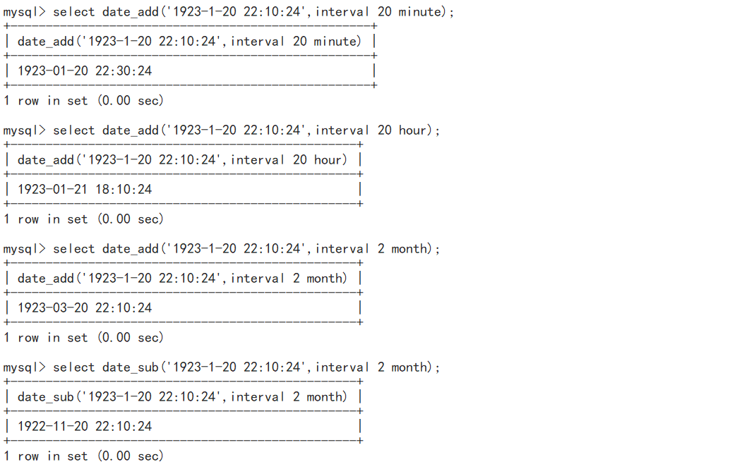 在date中添加日期或时间,interval后的数值单位可以是:year、minute、second、day |
