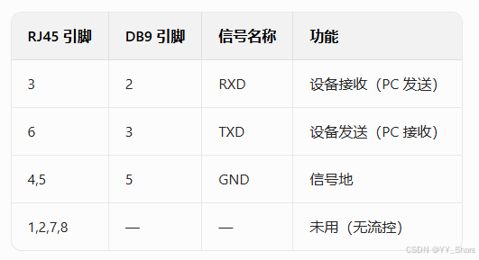 4. 引脚定义(RJ45 → DB9)