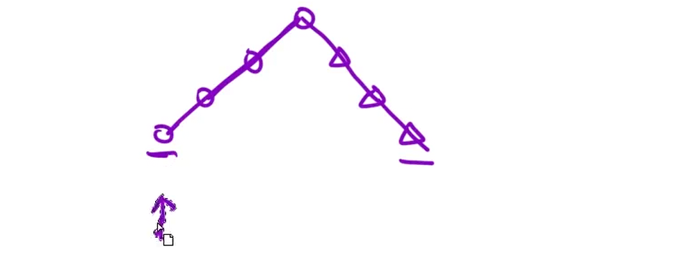 一直走走到了n-1的位置,此时返回山峰。暴力解法就是从第一个位置开始,一直向后走分情况讨论即可O(N)。接下来优化暴力解法: