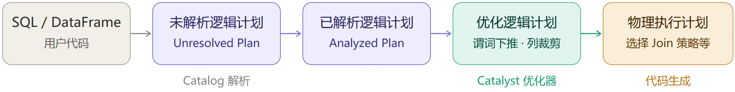 基础阶段 │ 第 4 章:整体架构 → 第 5 章:Spark SQL → 第 6 章:DAG 调度 → 第 7 章:Shuffle
