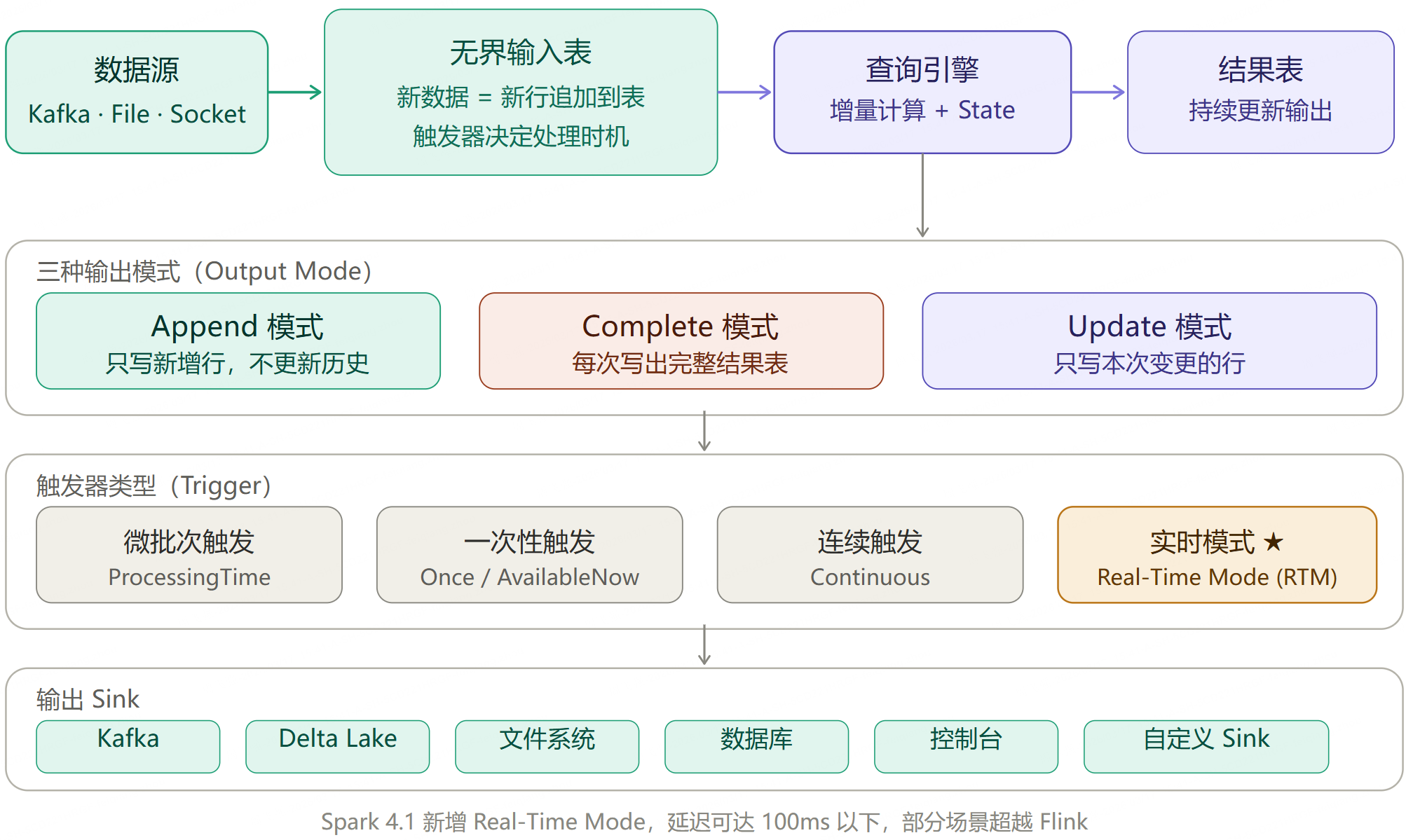 Spark 4.1 引入 Real-Time Mode,通过三大技术创新实现毫秒级延迟:
