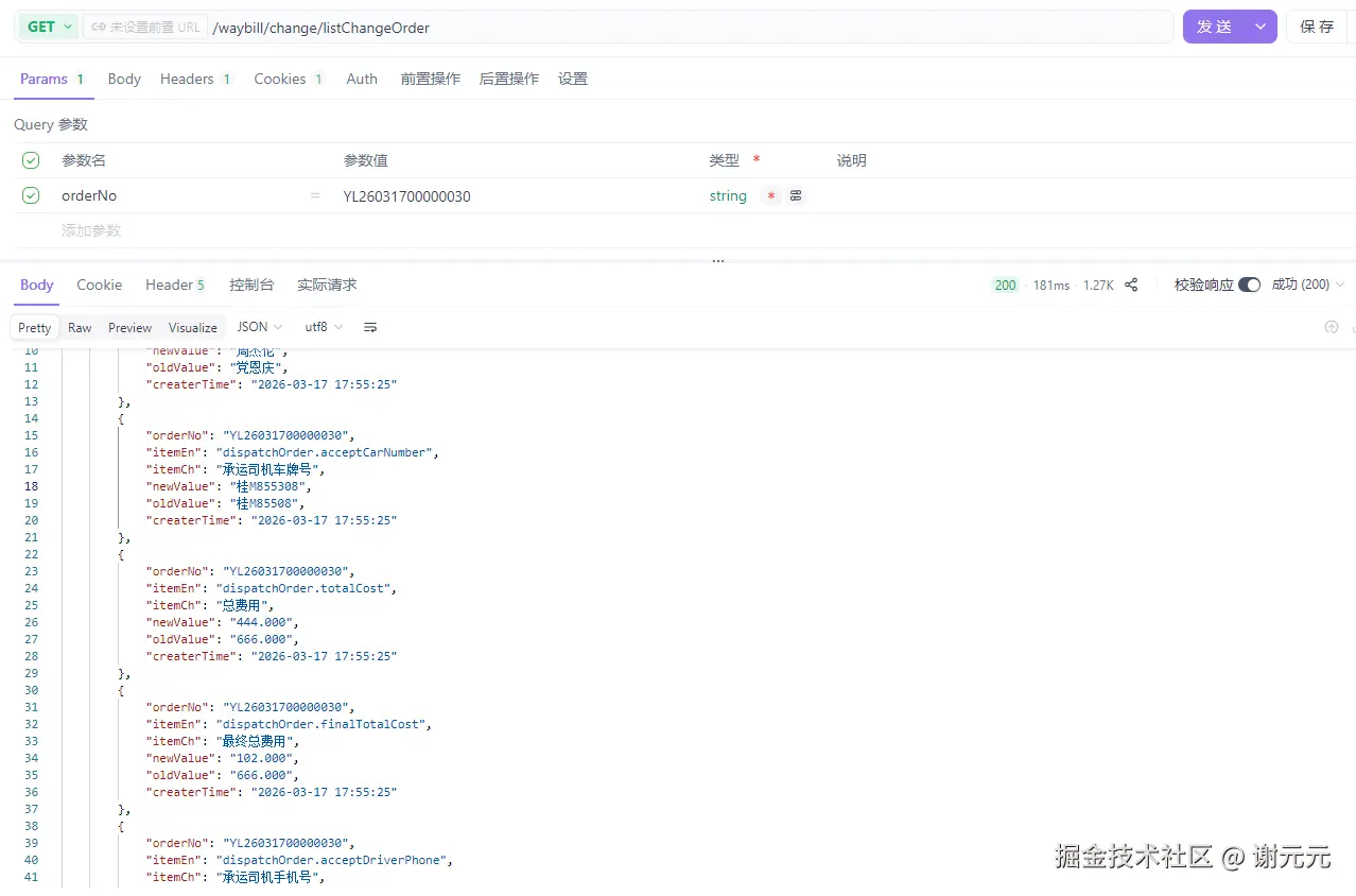 - 支持按运单号查询变更历史,展示友好的中文描述