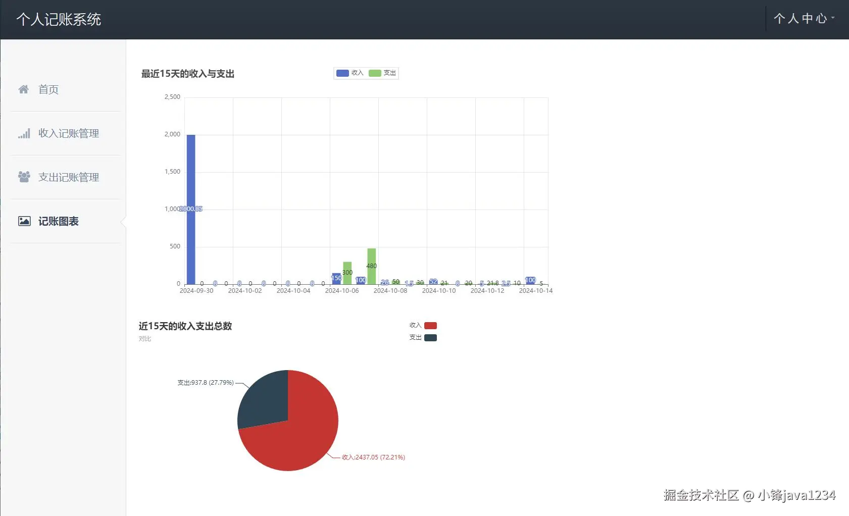 # 最近十五天的总支出
