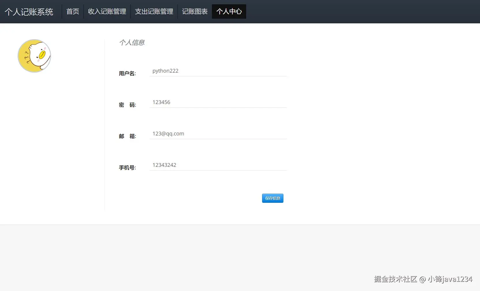 大家好,我是python222_小锋老师,分享一套优质的基于Python的Django个人理财(个人记账)管理系统 。