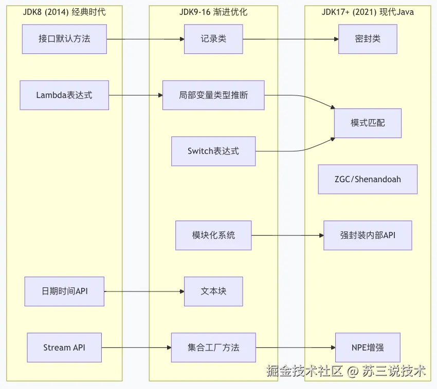 从JDK8到JDK17,Java的演进呈现出清晰的脉络: