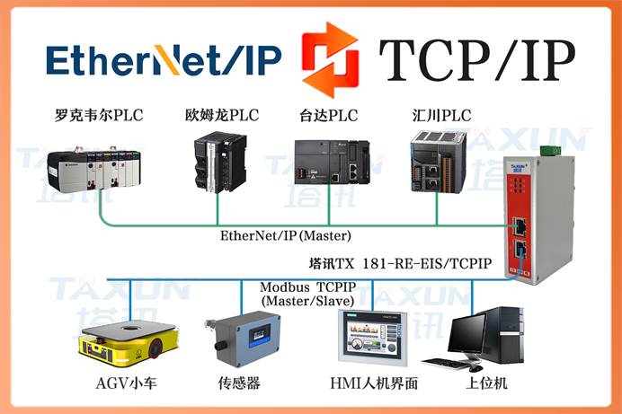 本次汽车零部件产线升级项目,依托塔讯 TX 181-RE-EIS-TCPIP 总线协议网关 ,成功实现欧姆龙PLC(EtherNet/IP协议)与TCP/IP现场设备的无缝通信,完美解决了工业自动化场景中常见的多协议不兼容、数据采集难、数字化升级受阻的核心问题,是工业网关 、智能网关在工业物联网落地中的典型应用。