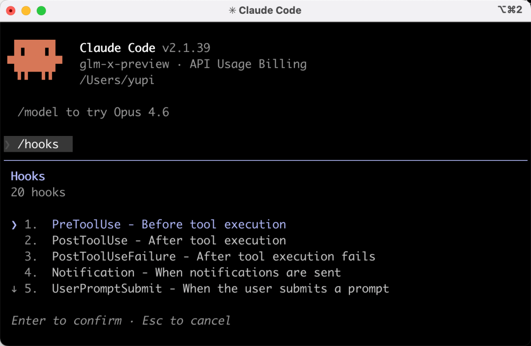 各种主流 AI 编程工具都支持 Hooks,比如在 Claude Code 中,Hooks 可以用来: