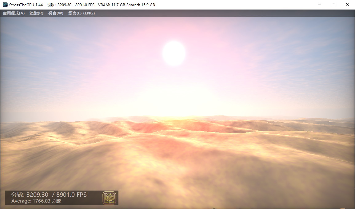 测试过程中实时显示 FPS 等关键指标,内置 60 秒基准测试模式,可生成在线对比分数,直观呈现显卡真实性能水平,方便用户对比参考。