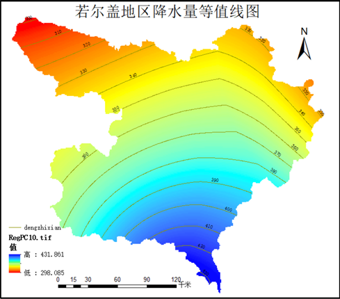 RegPC10:若尔盖地区2010年年降水量插值数据。