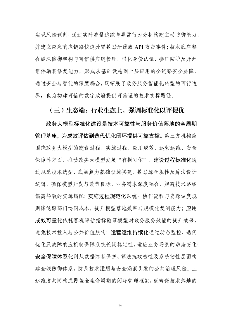 该指南适用于政务部门数字化负责人、AI 项目实施团队、政务大模型开发者及相关政策制定与咨询从业者。其重要性体现在:紧扣 "人工智能 + 政务" 发展趋势,聚焦政务大模型落地痛点,提供 "政策 - 技术 - 生态" 全维度实践指引。覆盖场景挖掘、模型部署、安全运维等核心环节,整合多地试点经验与标准化体系,明确供需生态协同路径。可助力打破数据孤岛、规范建设流程、强化安全合规,推动政务服务智能化升级,为数字政府建设提供科学支撑,适配高效政务服务与精准治理需求。