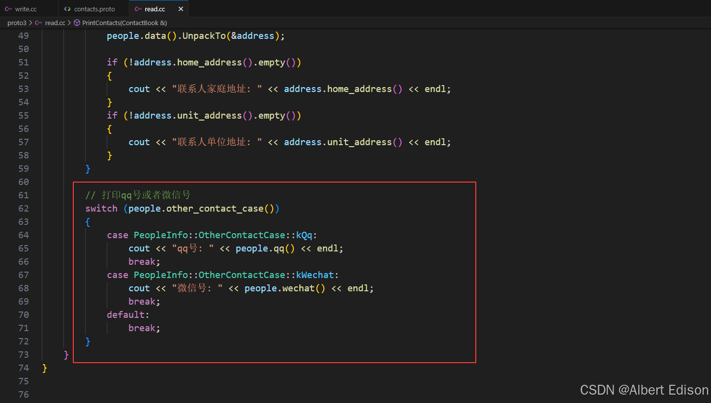- 设置和获取:对 oneof 内的字段进行常规的设置和获取即可,但要注意只能设置一个。如果设置多个,那么只会保留最后一次设置的成员。