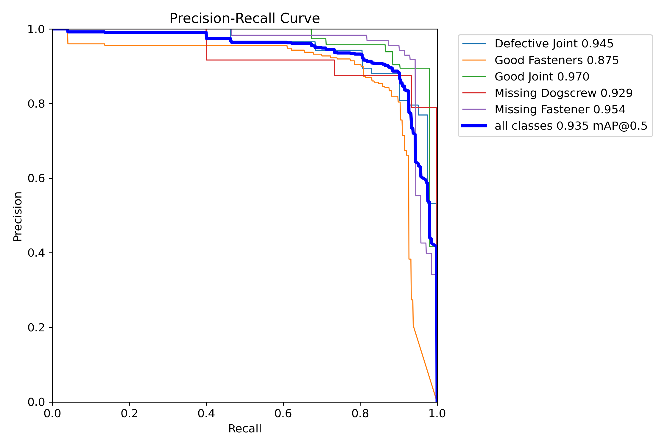 names: ['Defective Joint', 'Good Fasteners', 'Good Joint', 'Missing Dogscrew', 'Missing Fastener']