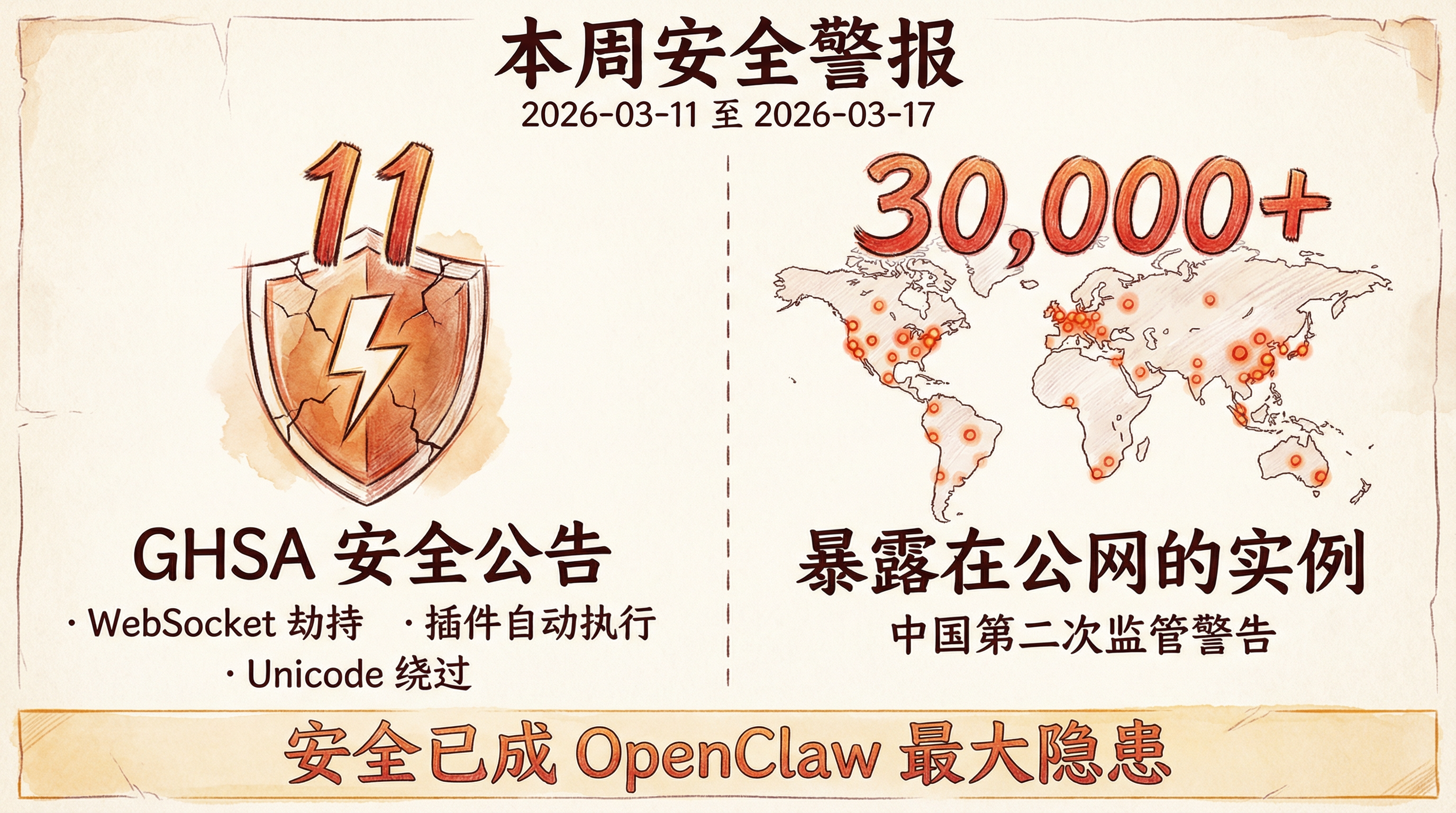 | 本周 GHSA 安全公告 | 11 个(2026.3.11: 1 个;2026.3.12: 9 个;2026.3.13: 1 个) |
