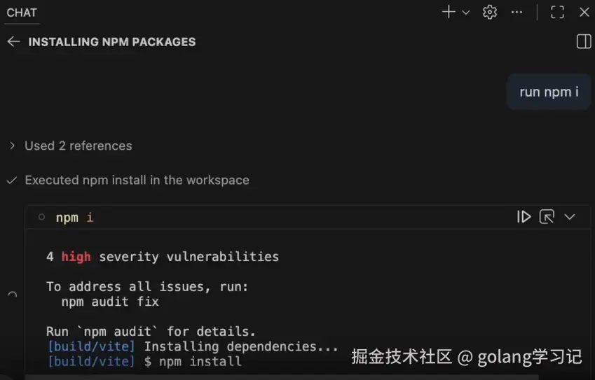 npm install时几百行的依赖日志?折叠起来!代理照样知道安装成功没,你也不用在聊天窗口里疯狂滚动。