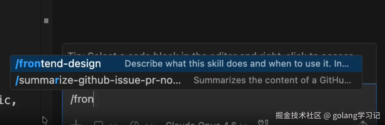 在需要写前端UI的时候,就直接使用/ 调出这个skill