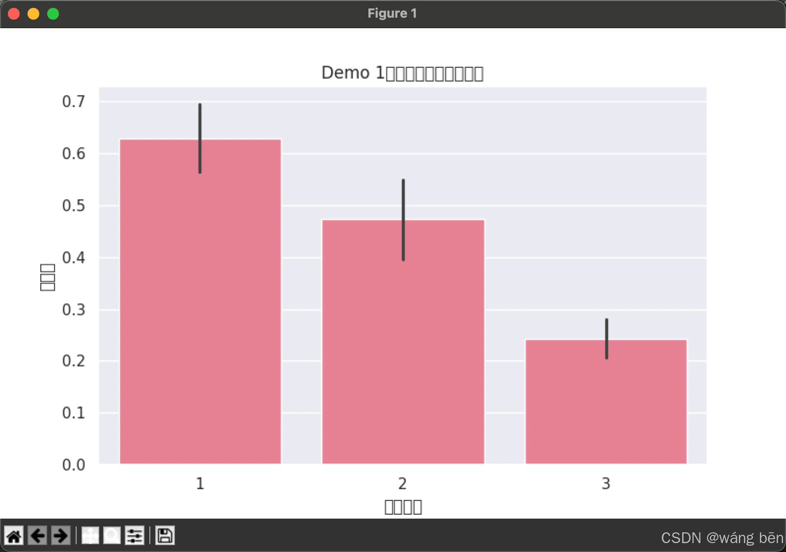 barplot (平均值 + 误差棒)------ 生存率、票价对比