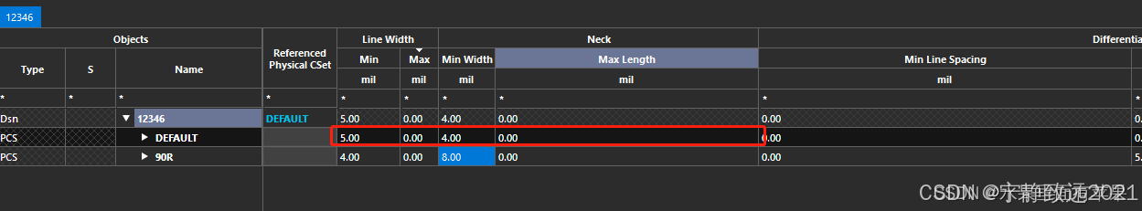 - 差分对Neck相关参数(在Electrical Constraint Set中)