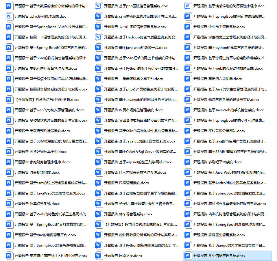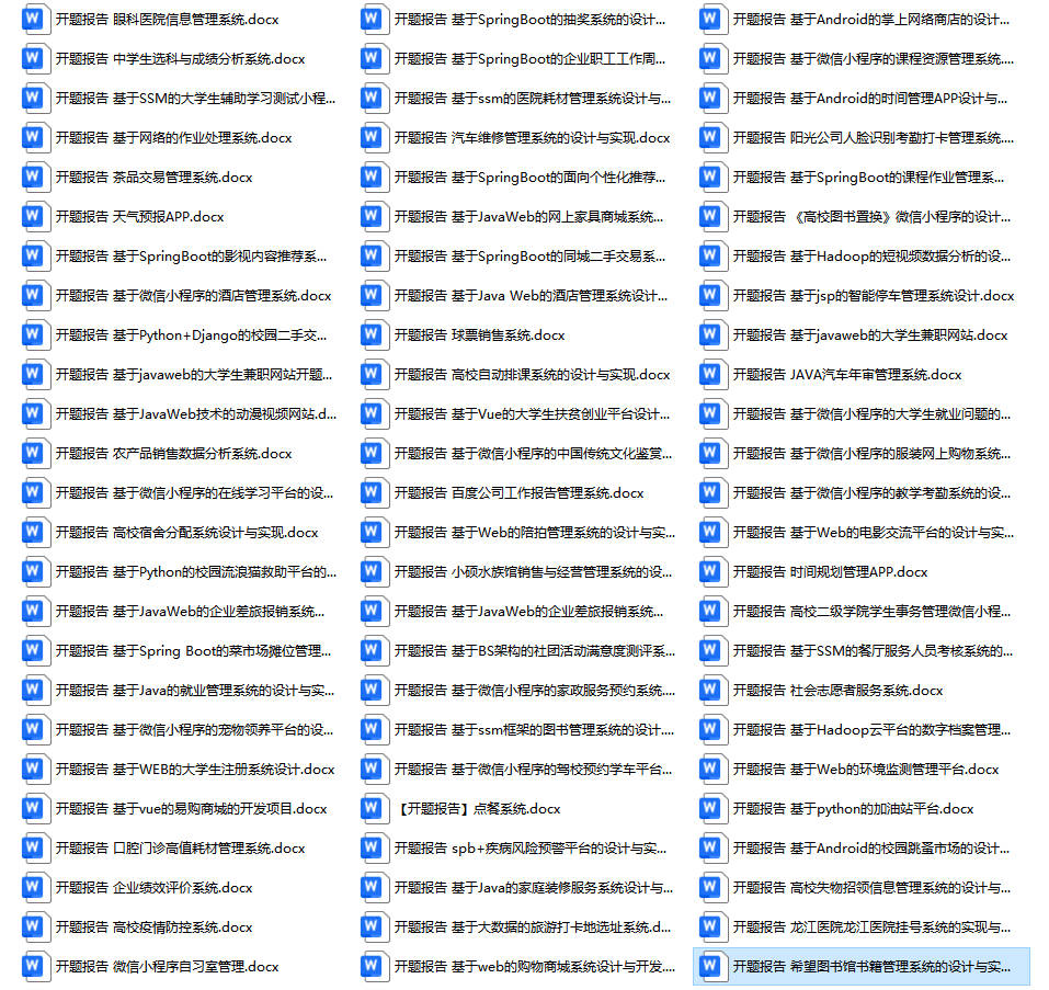 以上是某同学的毕业设计答辩的过程,如果你现在还没有参加答辩,还是开题阶段,已经选好了题目不知道怎么写开题报告,可以下面找找有没有自己符合自己题目的开题报告内容,列表中的开题报告都是往届真实的开题报告,可发送使用或参考。文末或底部来联xi可免费获取