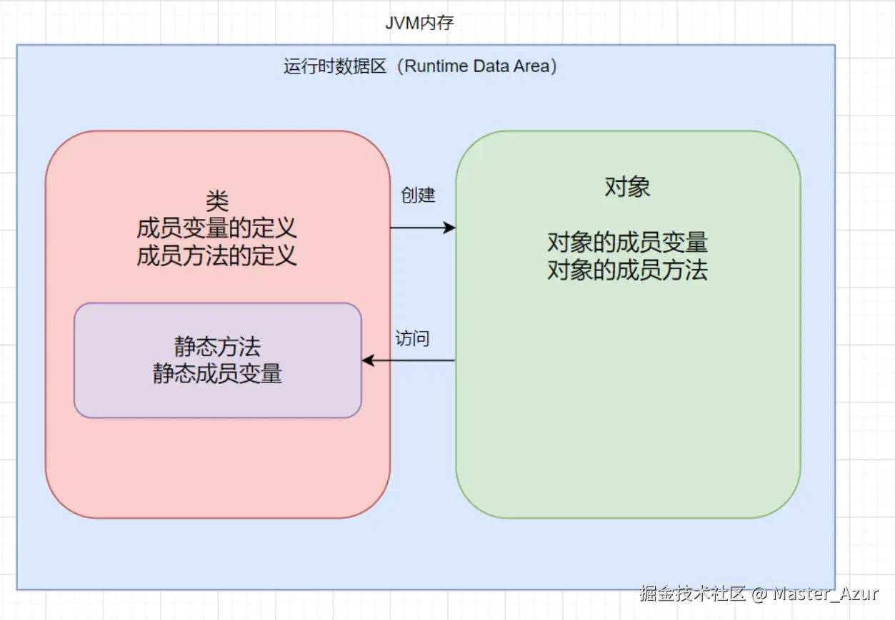 - 静态方法里不能直接访问成员变量、成员方法,因为成员变量和方法属于具体的对象。