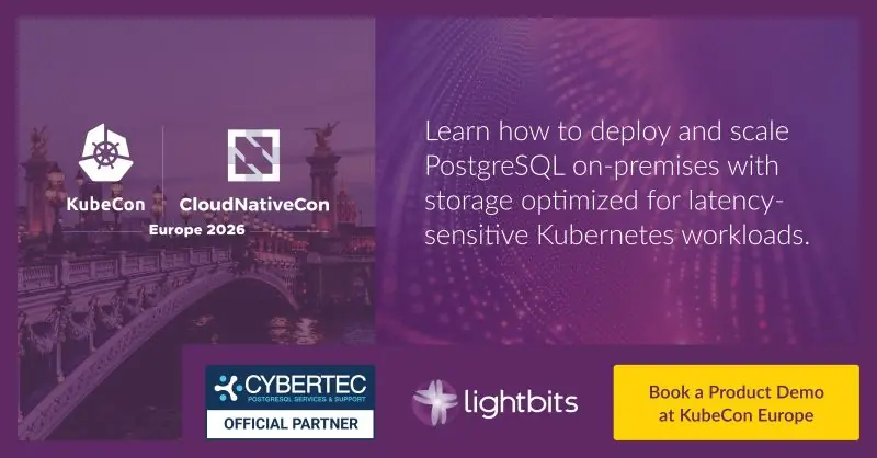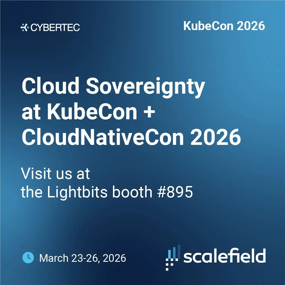 🧩 在KubeCon Europe上查看由CYBERTEC PostgreSQL服务和支持驱动的Scalefield DBaaS在LightbitsNVMe overTCP软件定义存储上运行的展示。
